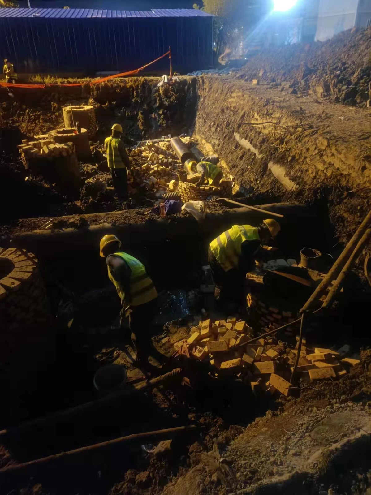 按照分工,我部主要負責隔離點(diǎn)排污管道鋪設、部分場(chǎng)地平整、化糞池安裝、壓力泵站安裝等建設任務(wù)。生命重于泰山,疫情就是命令。我部在最短的時(shí)間內完成了現場(chǎng)勘察,明確了施工方案,組織好人員、材料和機械,迅速展開(kāi)施工。由于各援建單位都在搶抓時(shí)間,材料堆滿(mǎn)了施工現場(chǎng)。面對有限的工作面,我部積極協(xié)調,見(jiàn)縫插針,同時(shí)克服現場(chǎng)無(wú)水的生活困難,吃住在現場(chǎng),日夜趕工,接力連軸,快速推進(jìn)施工進(jìn)度。